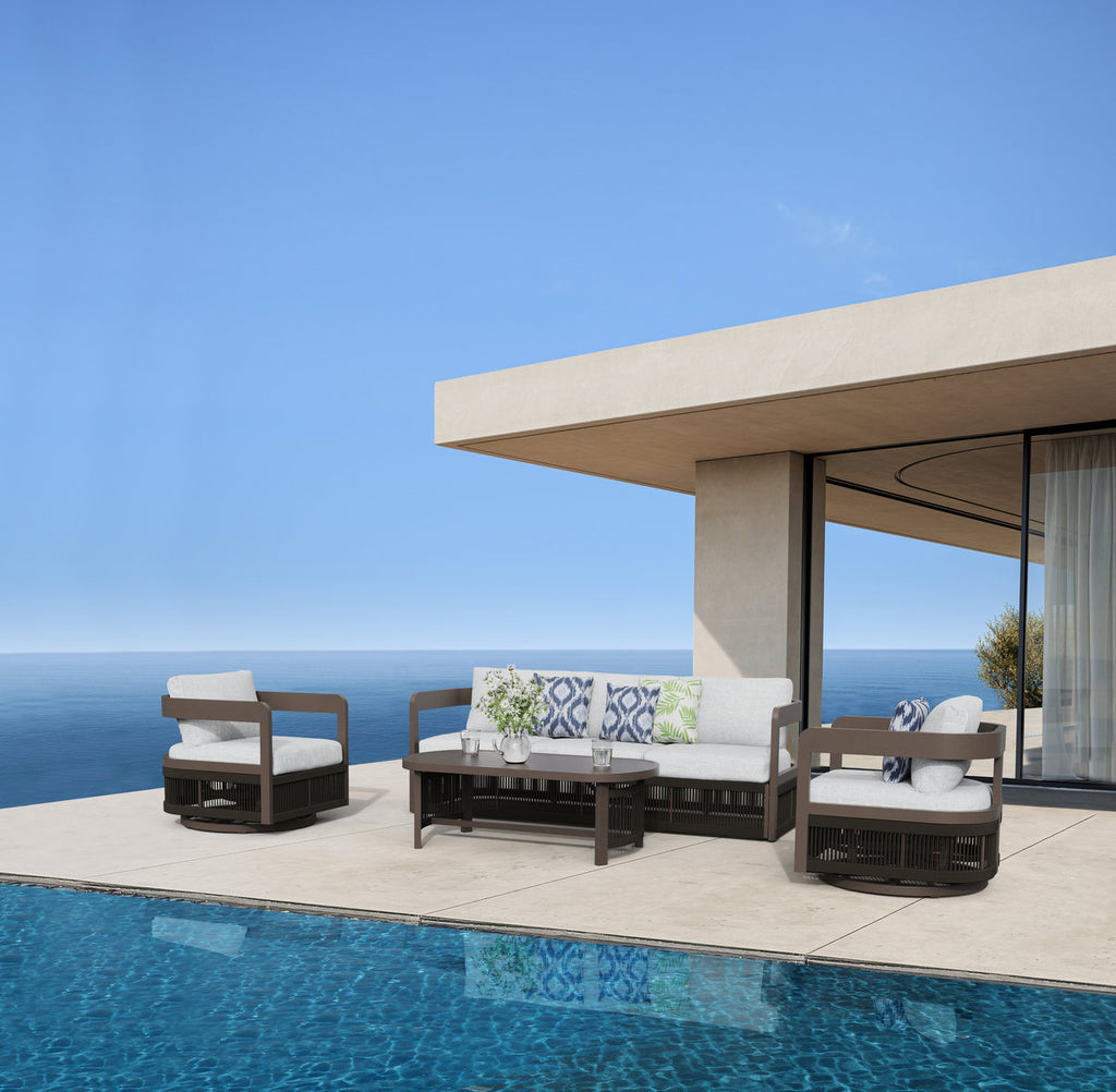 Acadia 4-Piece Aluminum Living Room Set With Swivel Chairs